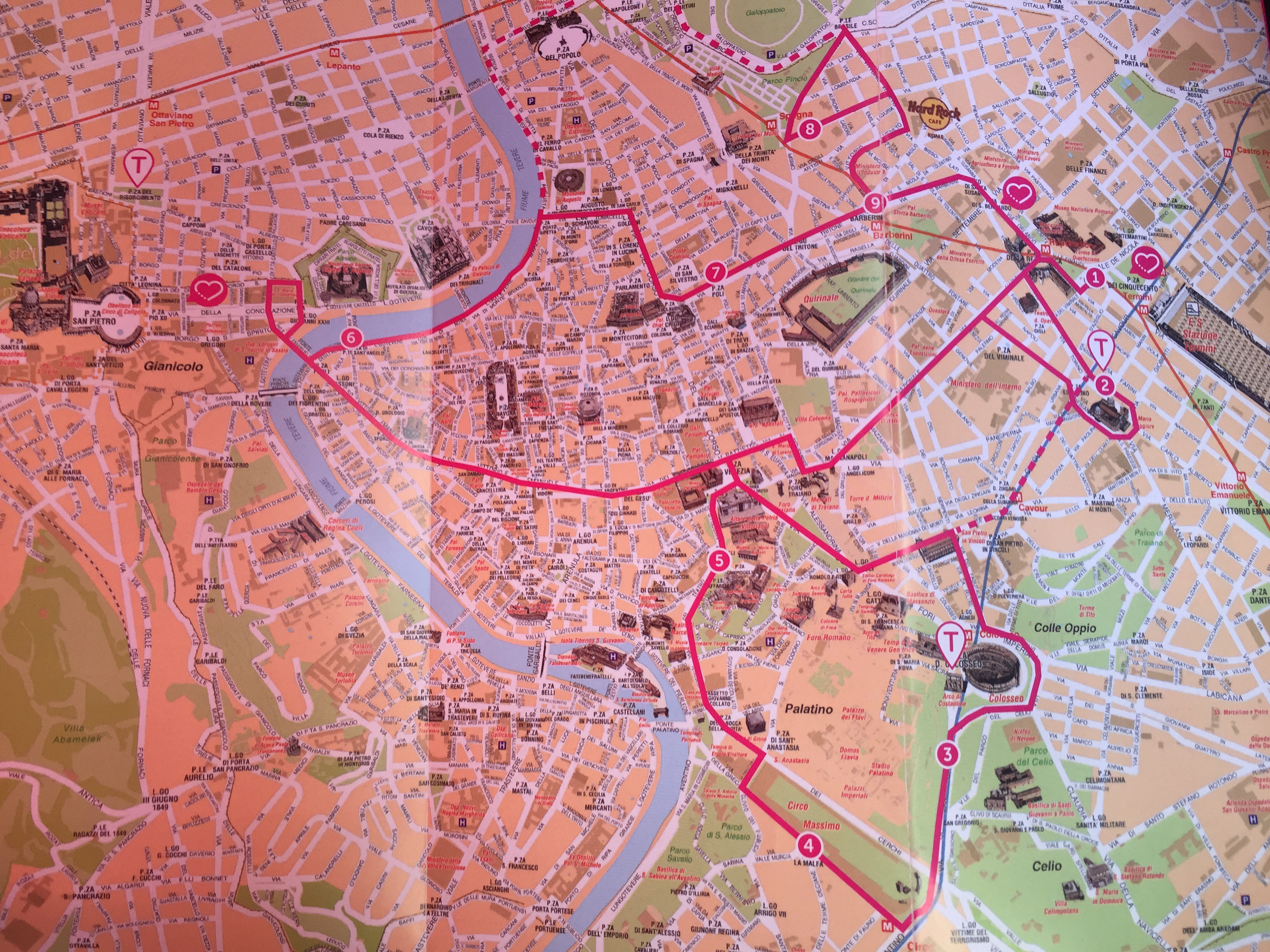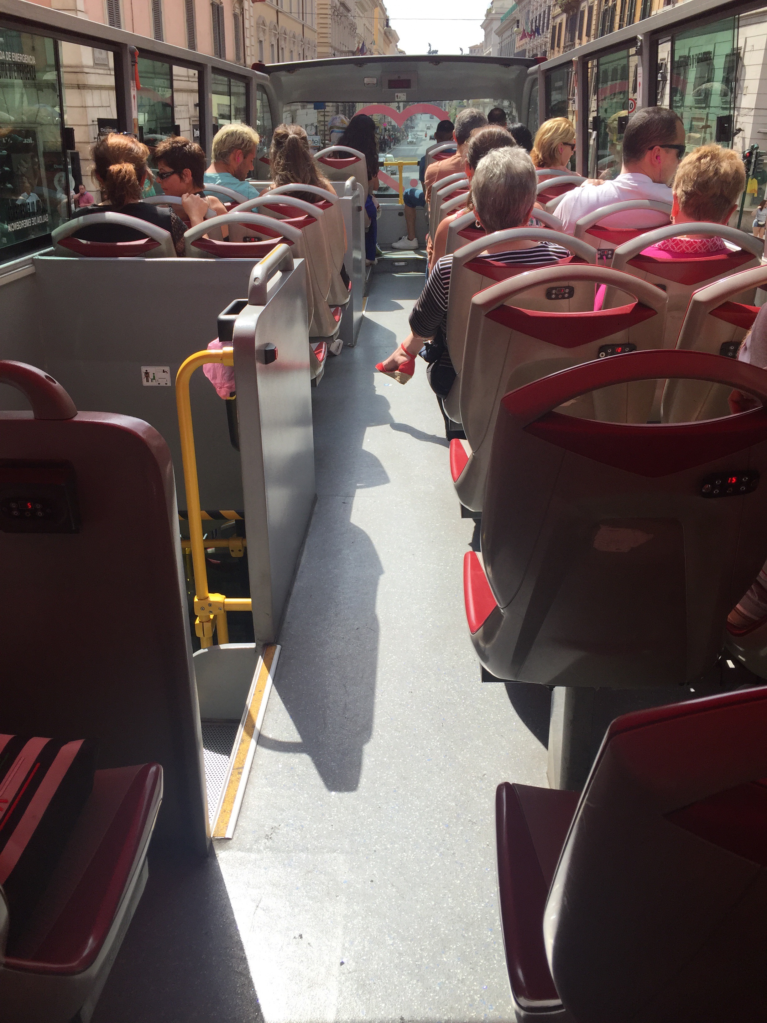 想了解一個陌生城市最快的方法就是參加city tour,羅馬有三個不同的觀光巴士,基本上都大同小異,選I love Rome單純是因為它CIS的超級粉紅色在找巴士站時很好辨認。