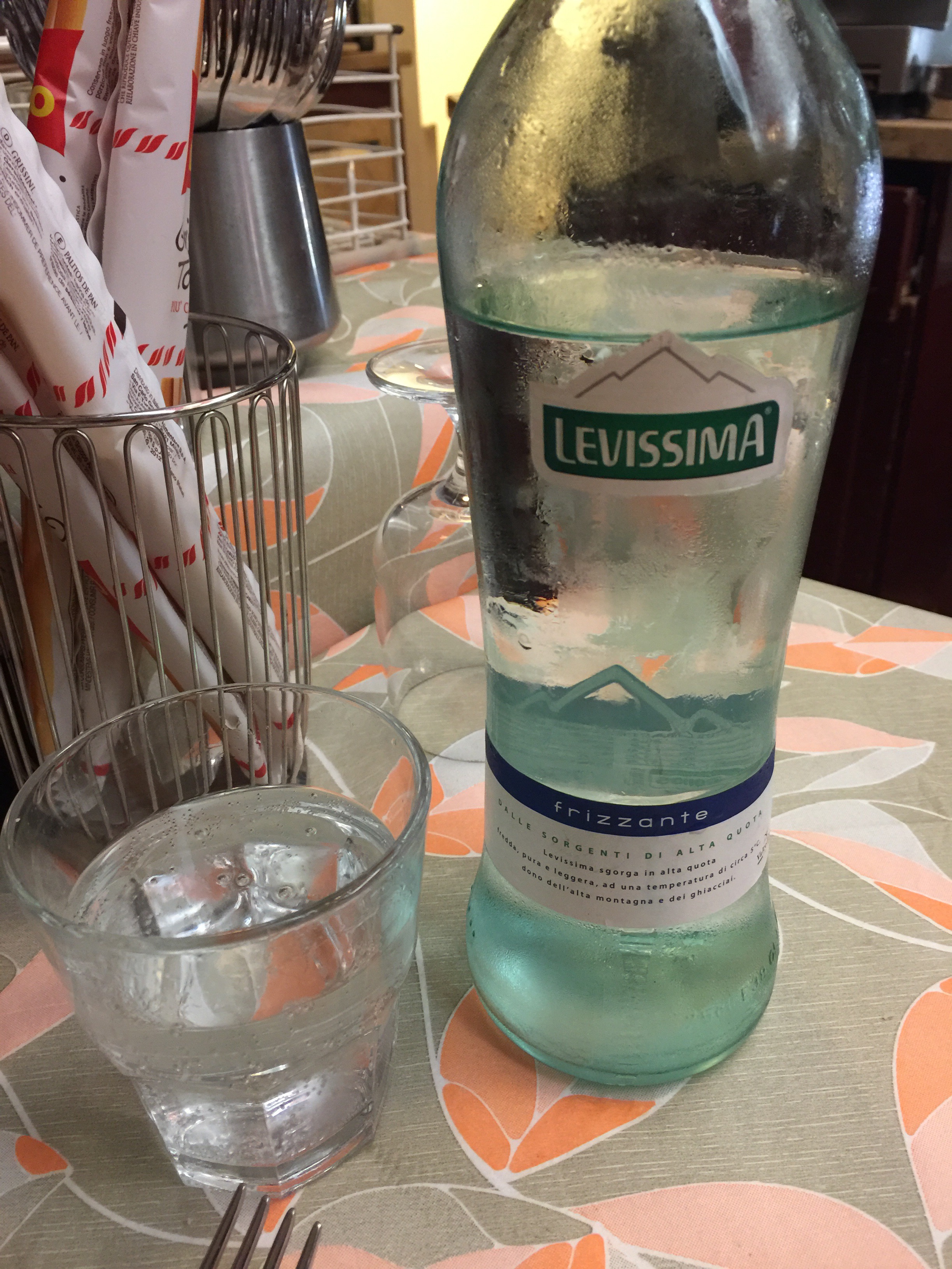 知道水很貴,但因為很渴,還是點了一瓶氣泡水來喝。