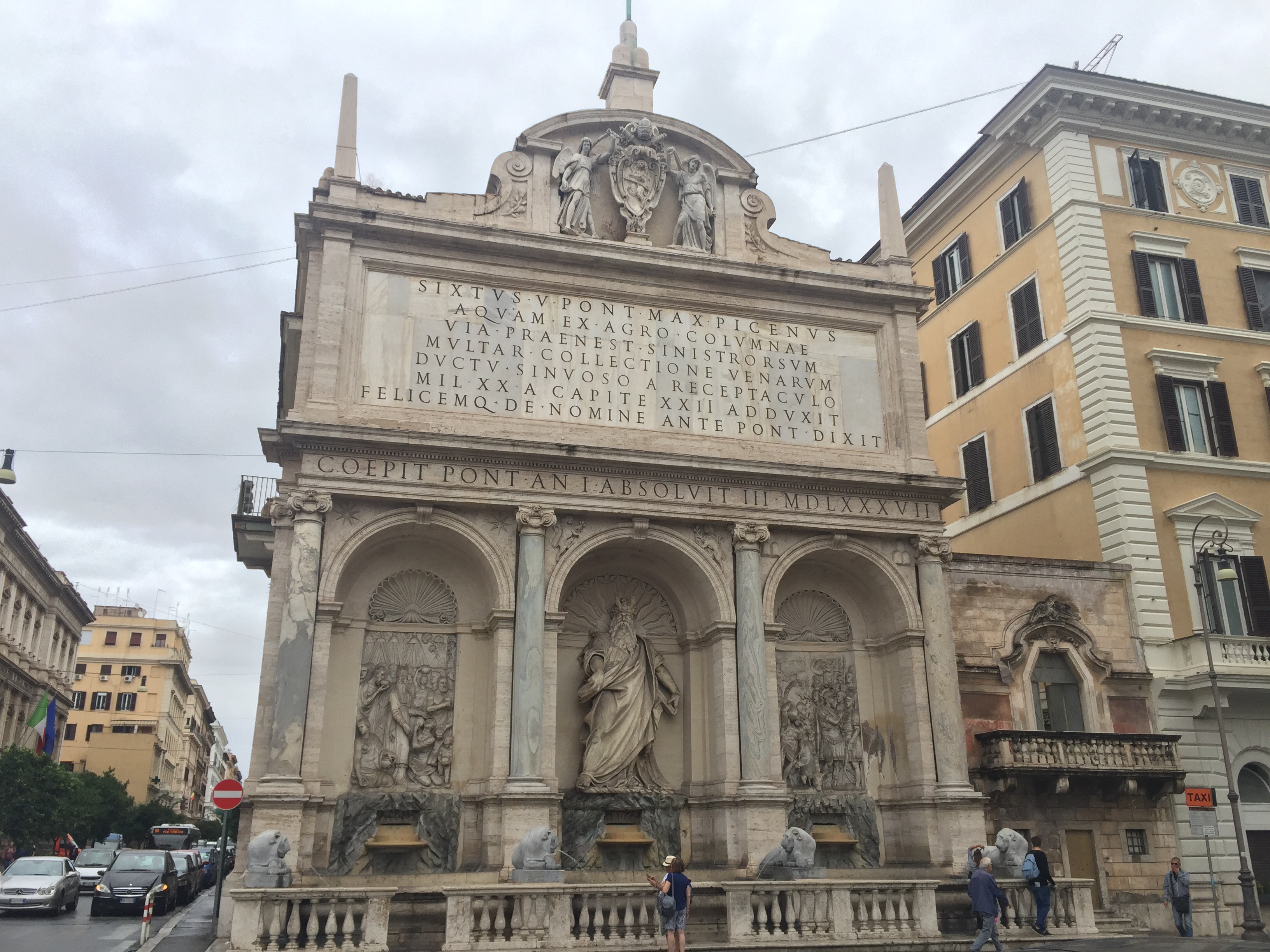 走出教堂外,對面就是摩西噴泉,中間的摩西雕塑頭頂也是長著角,當然神情與體態不能跟鎖鏈聖彼得教堂裡那座摩西像比,大師級作品就是不一樣阿!