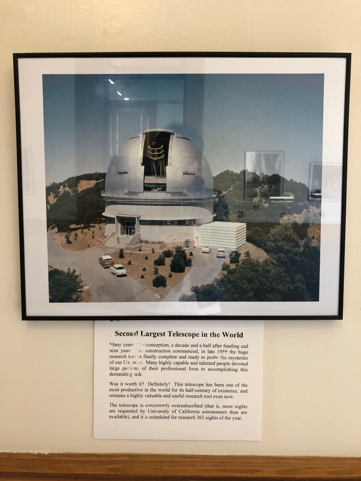 3m (120 inches) 唐納德沙恩天文望遠鏡,唯一一台裝載雷射導星系統的反射望遠鏡,雷射光束可以計算出星球距離,此功能在阿婆羅11號發射升空時扮演了相當重要的角色。