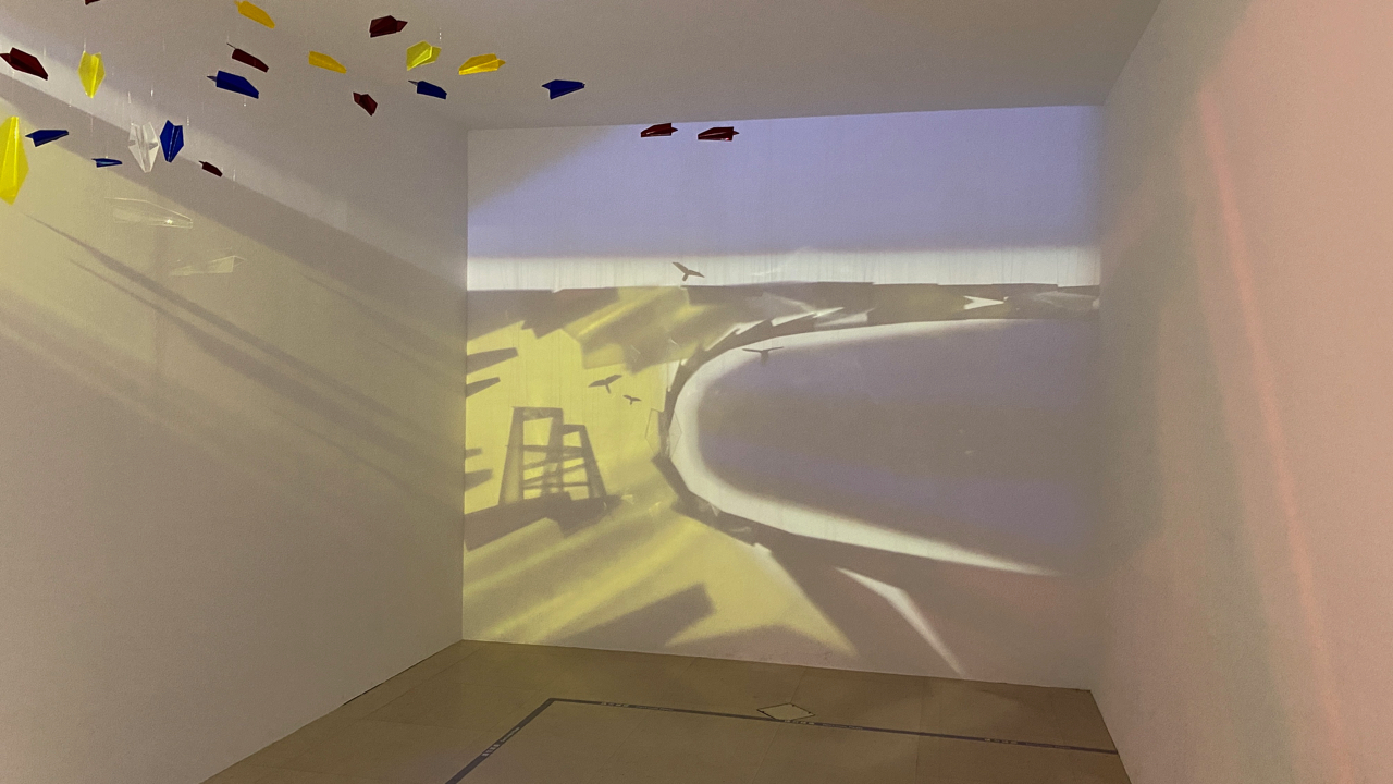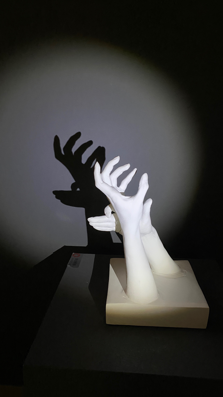 一個實驗性質很濃厚的互動影像創作,該怎麼感受作品?端看自己與光源剪影的互動玩法,舉手或是投足,蹲下或是起立,就靠觀展者自己天馬行空的肢體語言來創作啦!創作理念傳送門