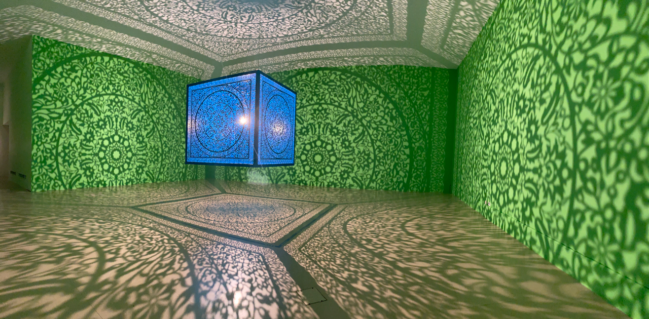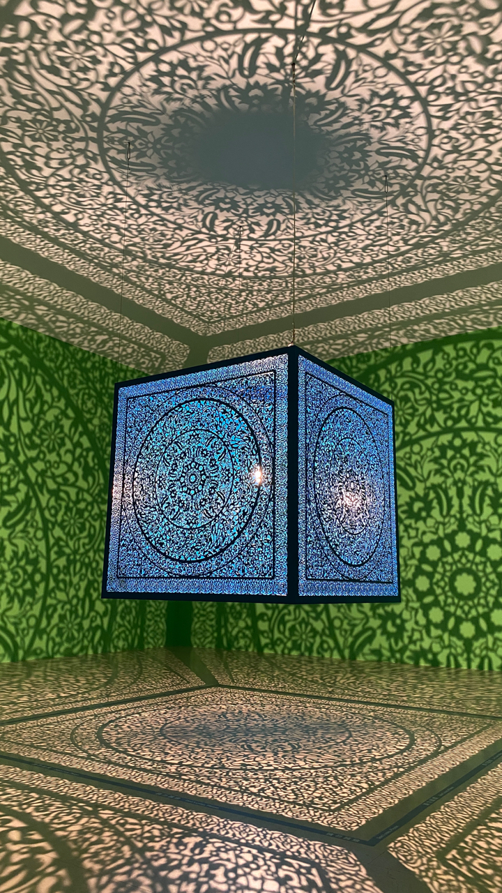 這個創作應該在最近的網紅曝光率很高吧,這位擁有著中東血脈的女藝術家為傳遞出藝術的平權理念,以伊斯蘭圖騰為基底,打造出一個六面的魔幻光影方塊;人們可以與影子互動,在光影間大玩影子遊戲。創作理念傳送門
