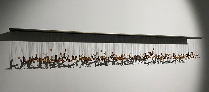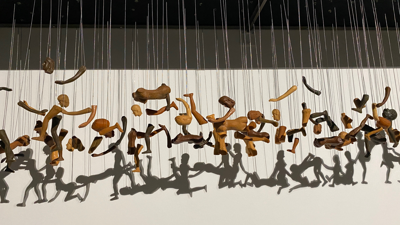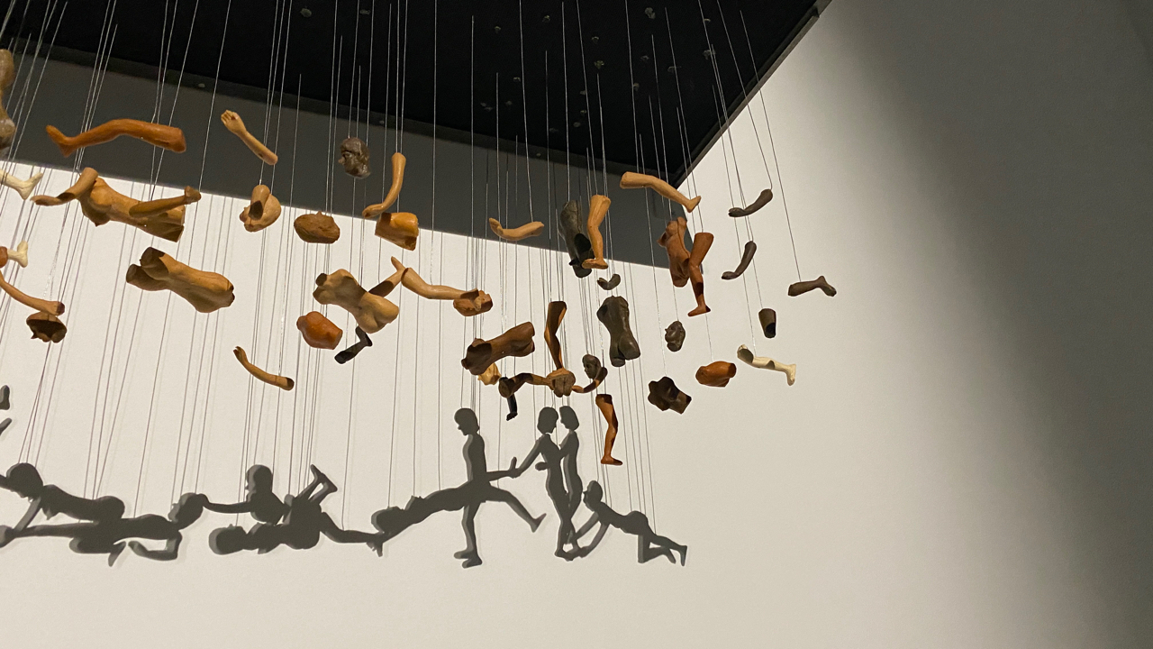 創作者拆解出人體各個部件,藉以上下前後懸吊位置的不同,在探照燈的光源下架構出人與人互動間的合體〝影〞像。創作理念傳送門