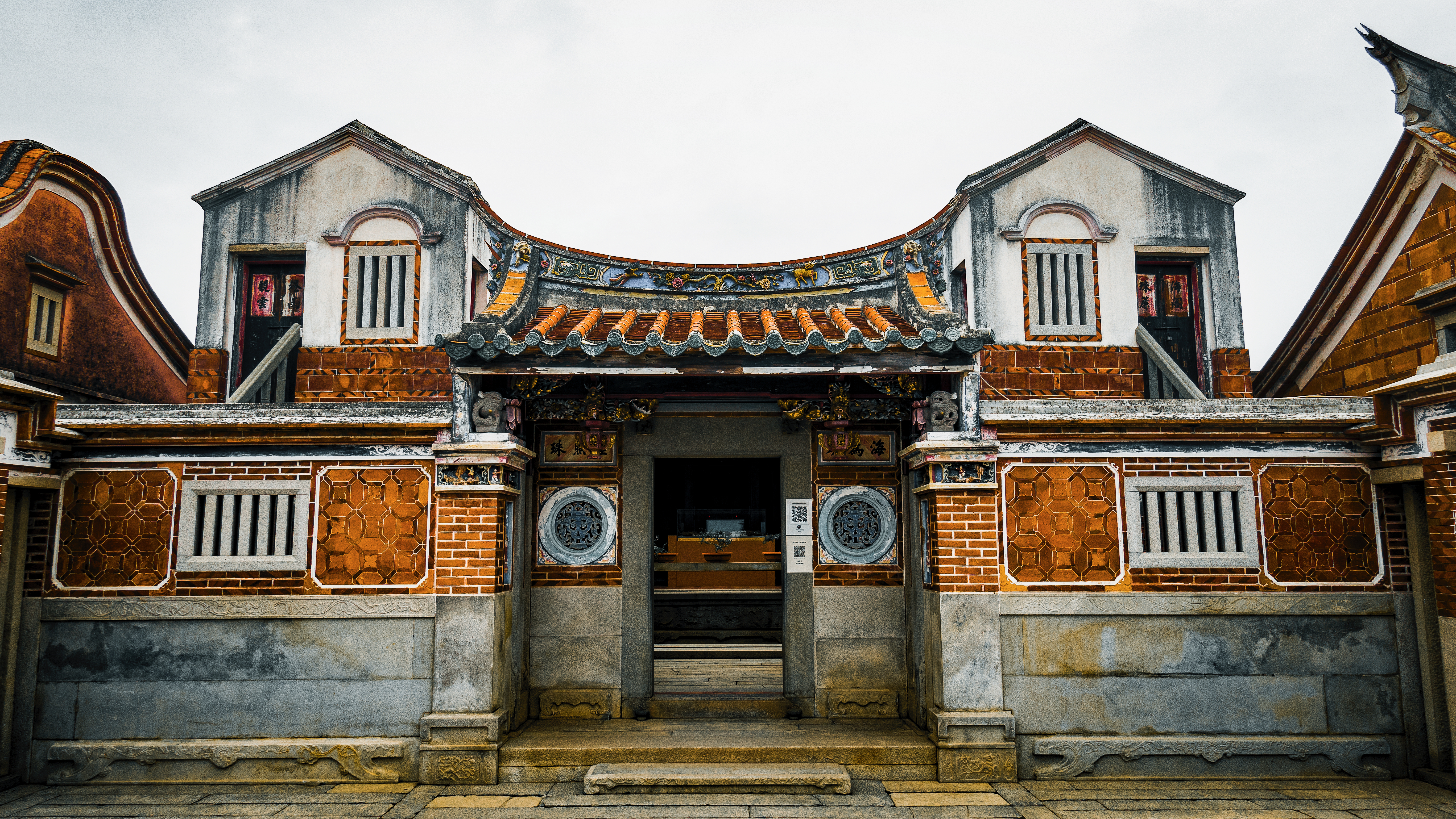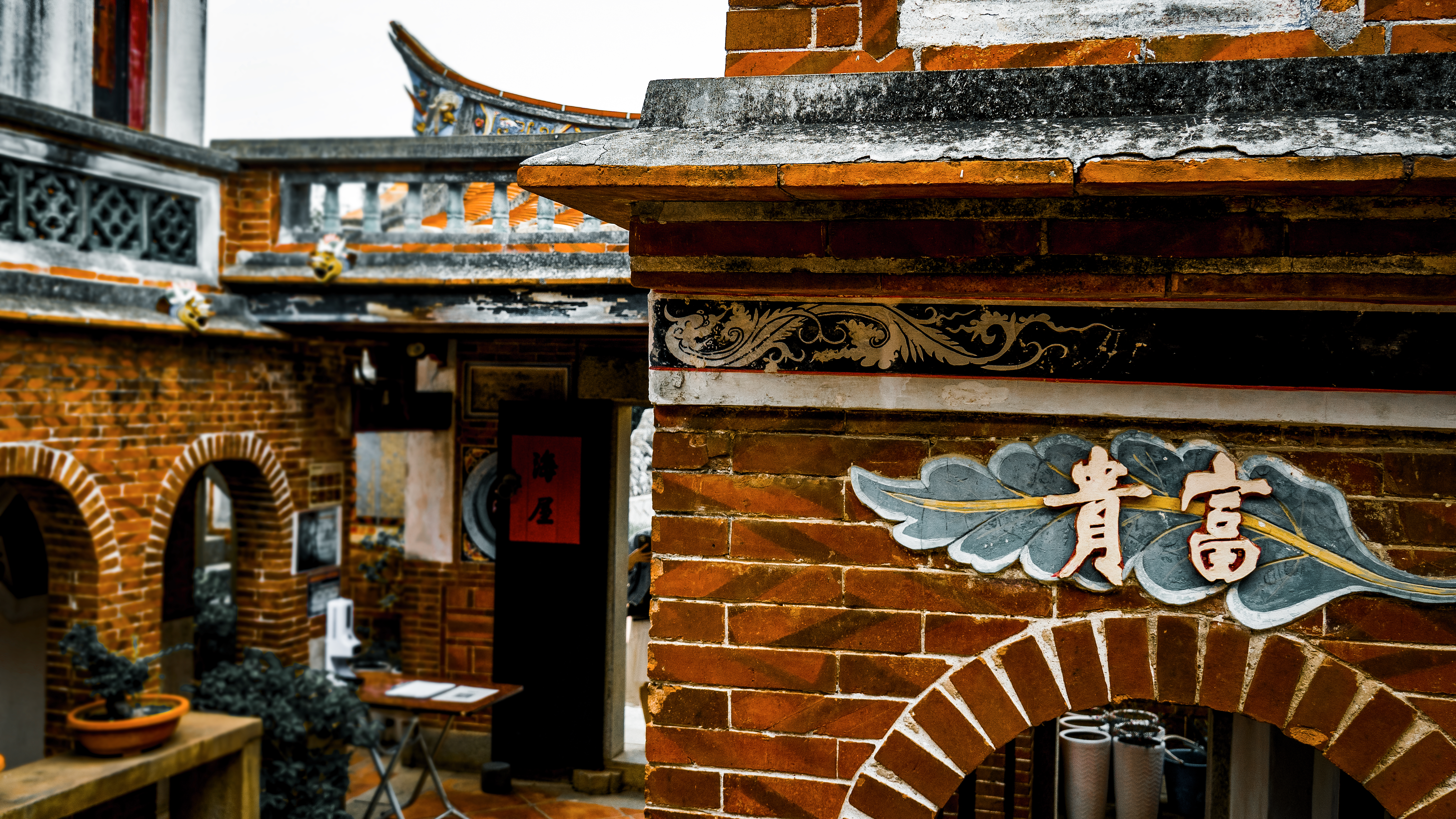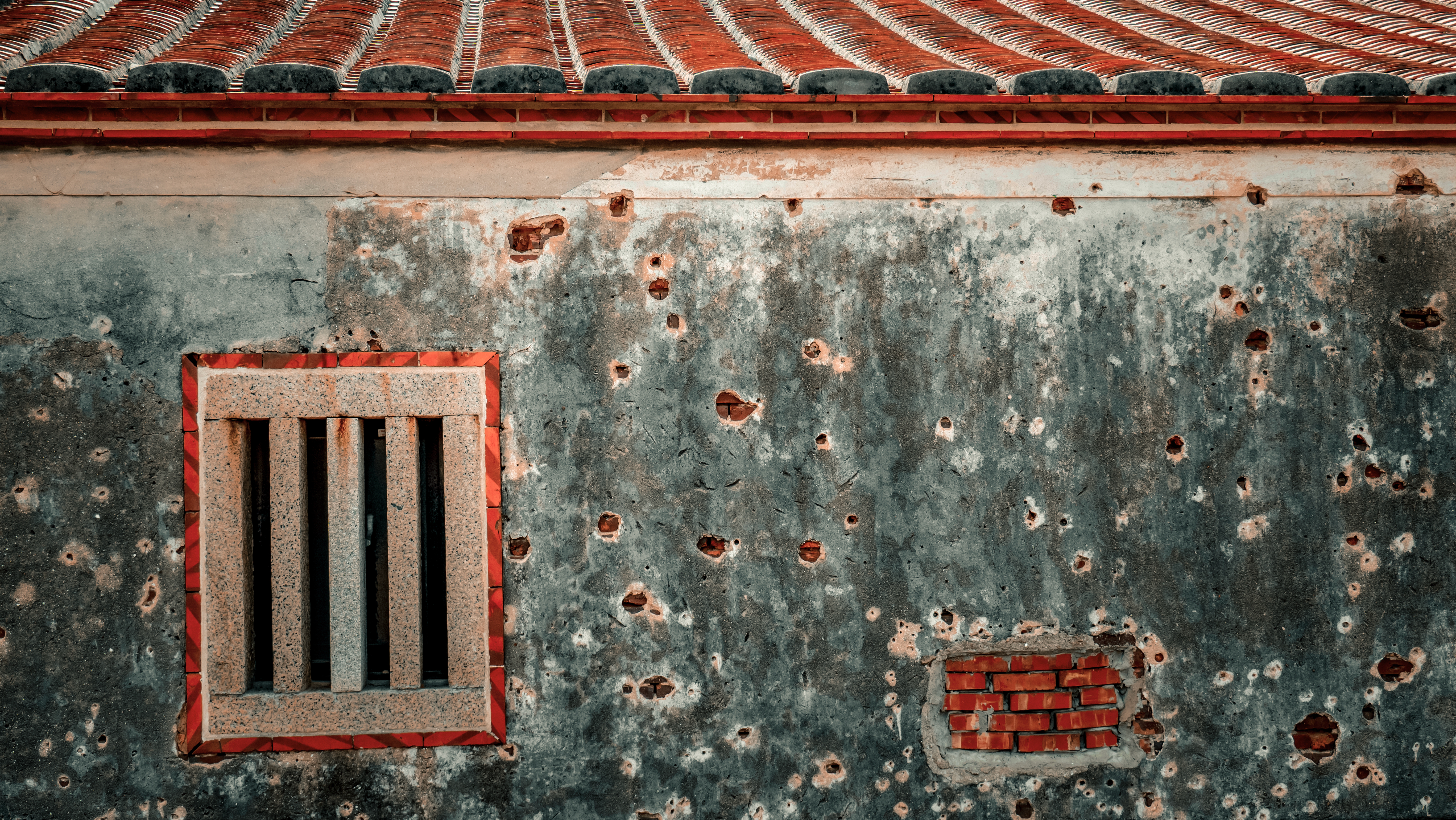 ↑ 在金門有許多保存良好的閩式建築,也隨處可見佈滿彈痕的牆垛,每一個彈孔都訴說著戰爭的無情。