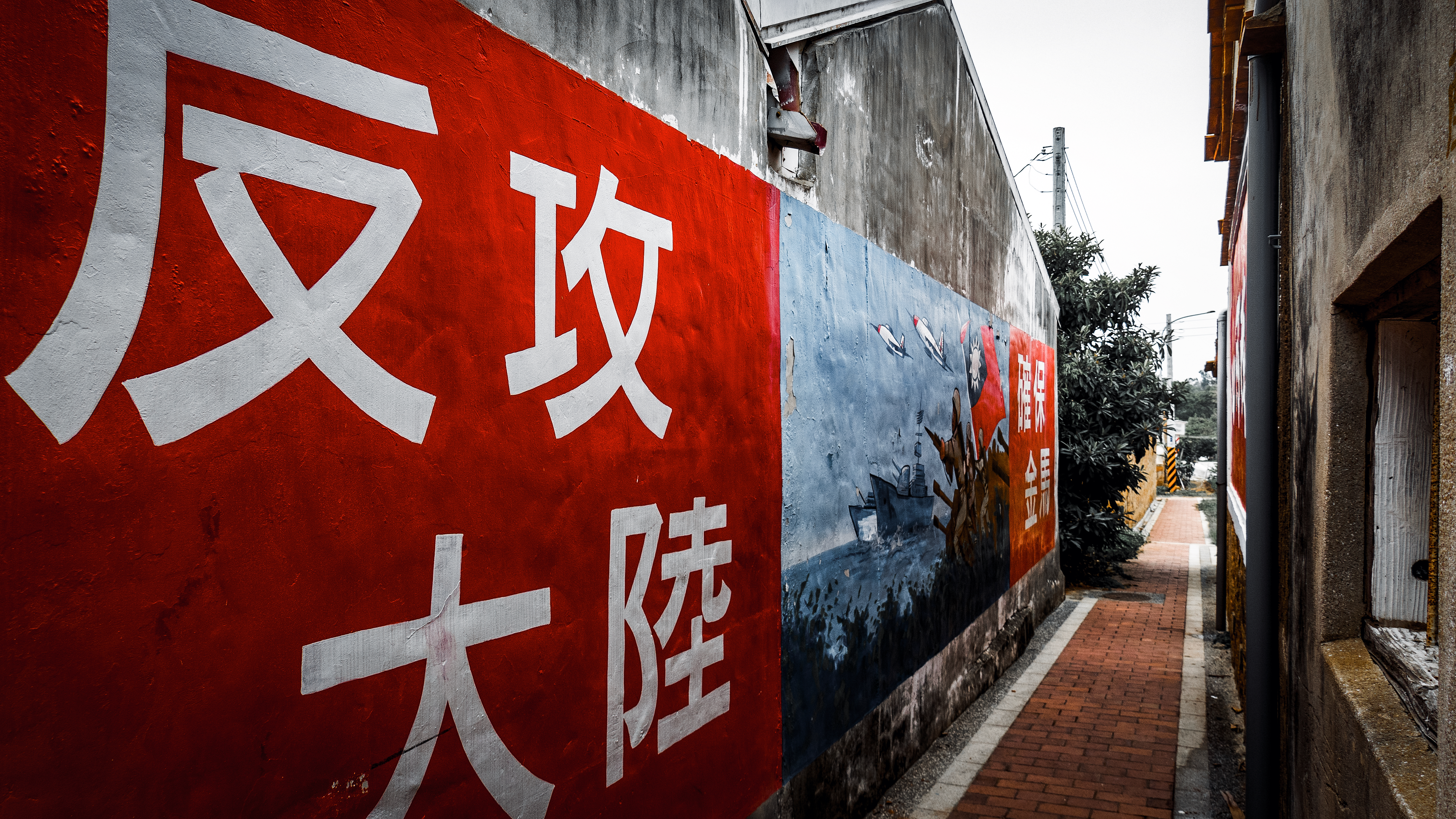 ↑ 陽翟老街:軍中樂園拍攝地,也是熱門IG打卡點,老建築上的反共標語,時光穿越,一下子把人拉回到50年前。