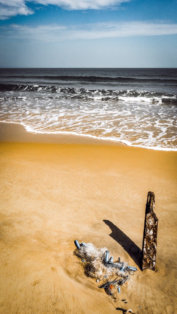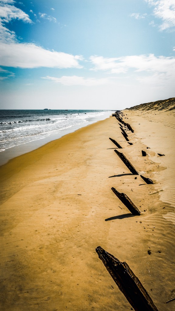 ↑ 歐厝海灘,戰車殘骸我是沒找到,但沙灘上的細沙,綿密且閃著金光,金門這地名或許是因此而得名的吧。