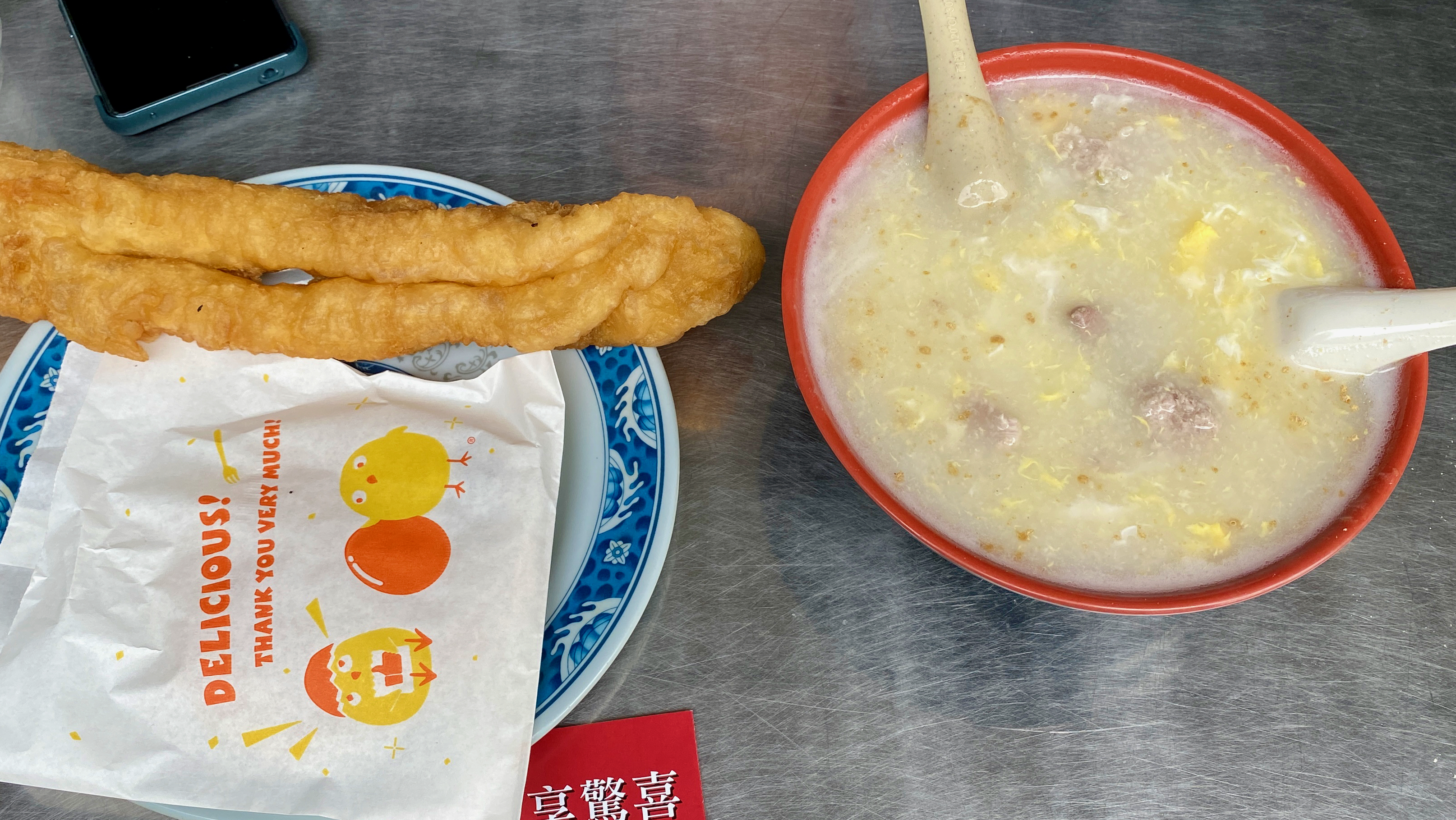 ↑ 除了高粱酒、牛肉乾、炒泡麵外,必吃的就屬廣東粥了。