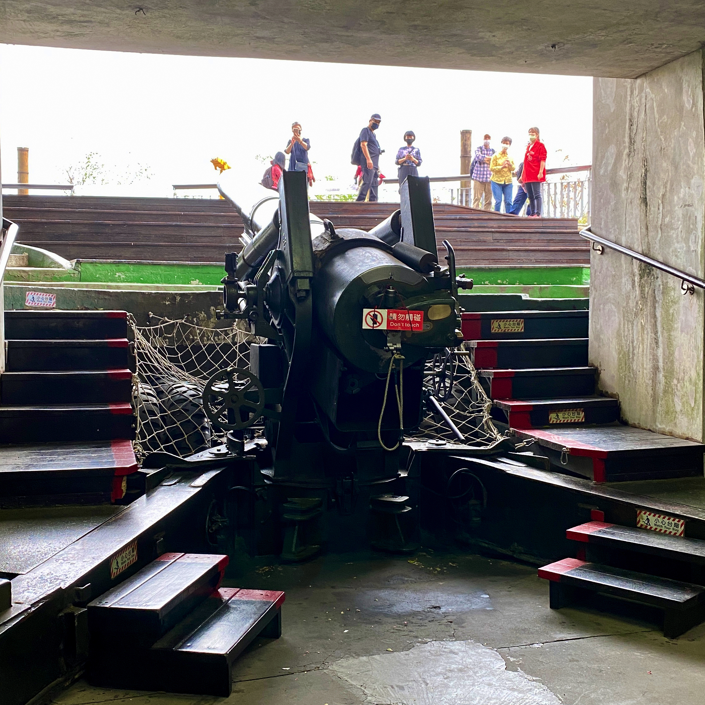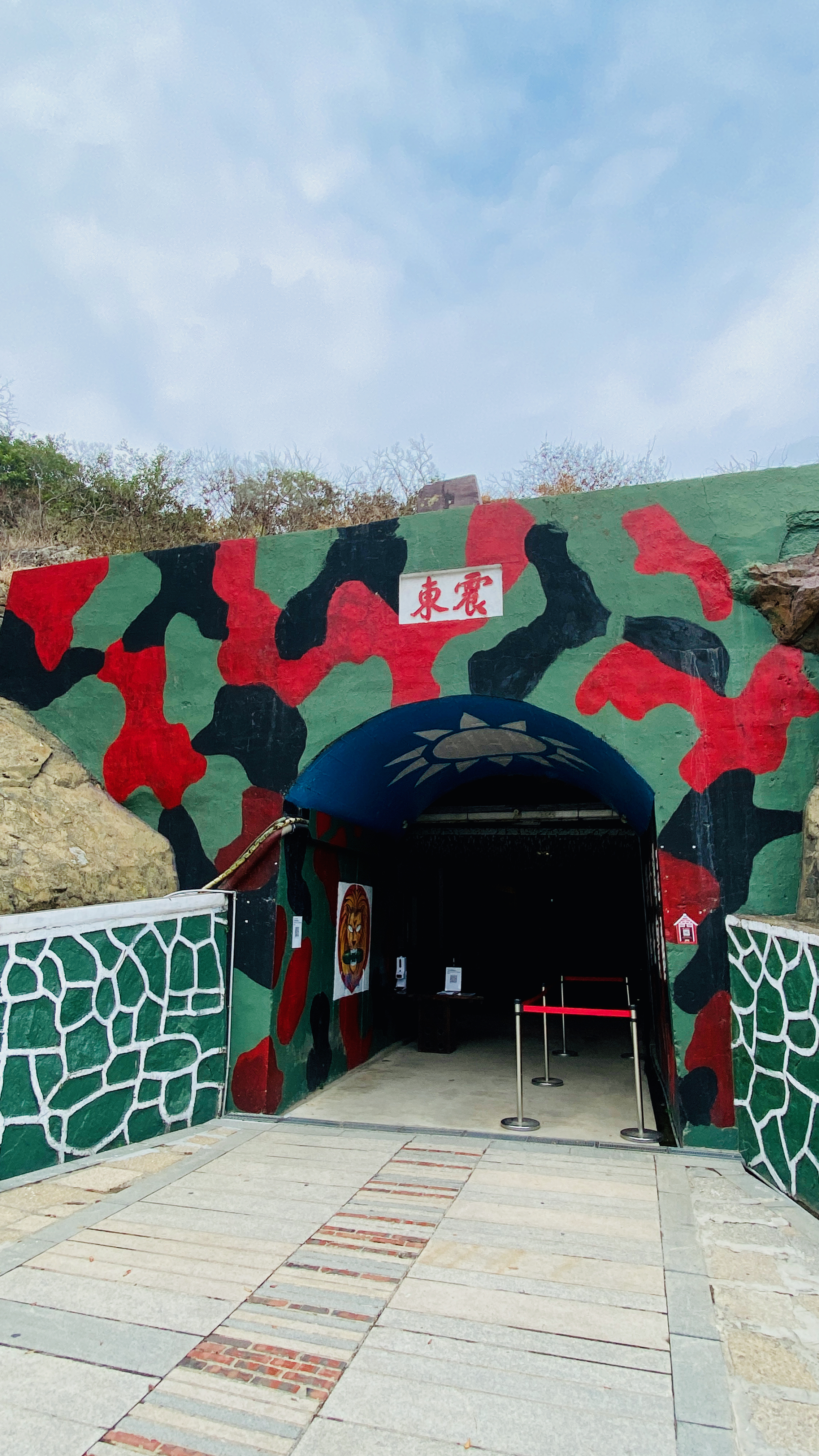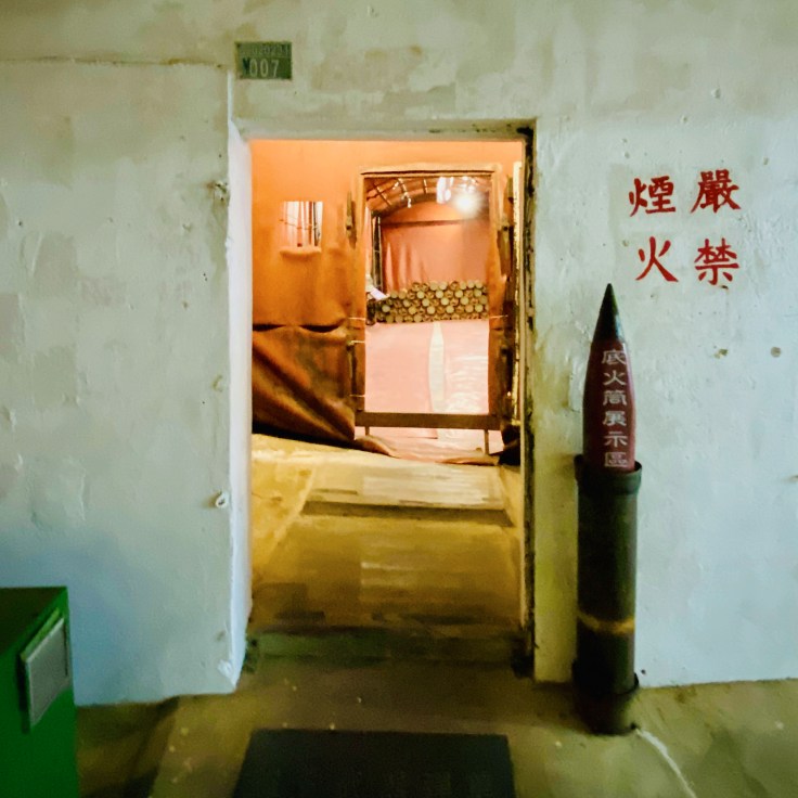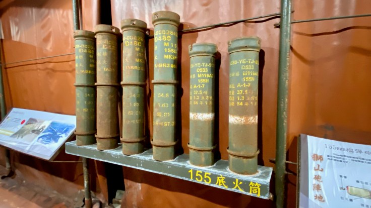 ↑ 金門獅山砲陣地,是現存唯一的坑道式榴彈砲陣地,又名為震東坑道,取「威震金東」的意涵,每日排有砲操表演(週四除外),也可參觀當年戰地坑道內砲彈存放與排佈,感受當時國軍經歷823砲戰等大小戰役的艱困與無畏無懼。