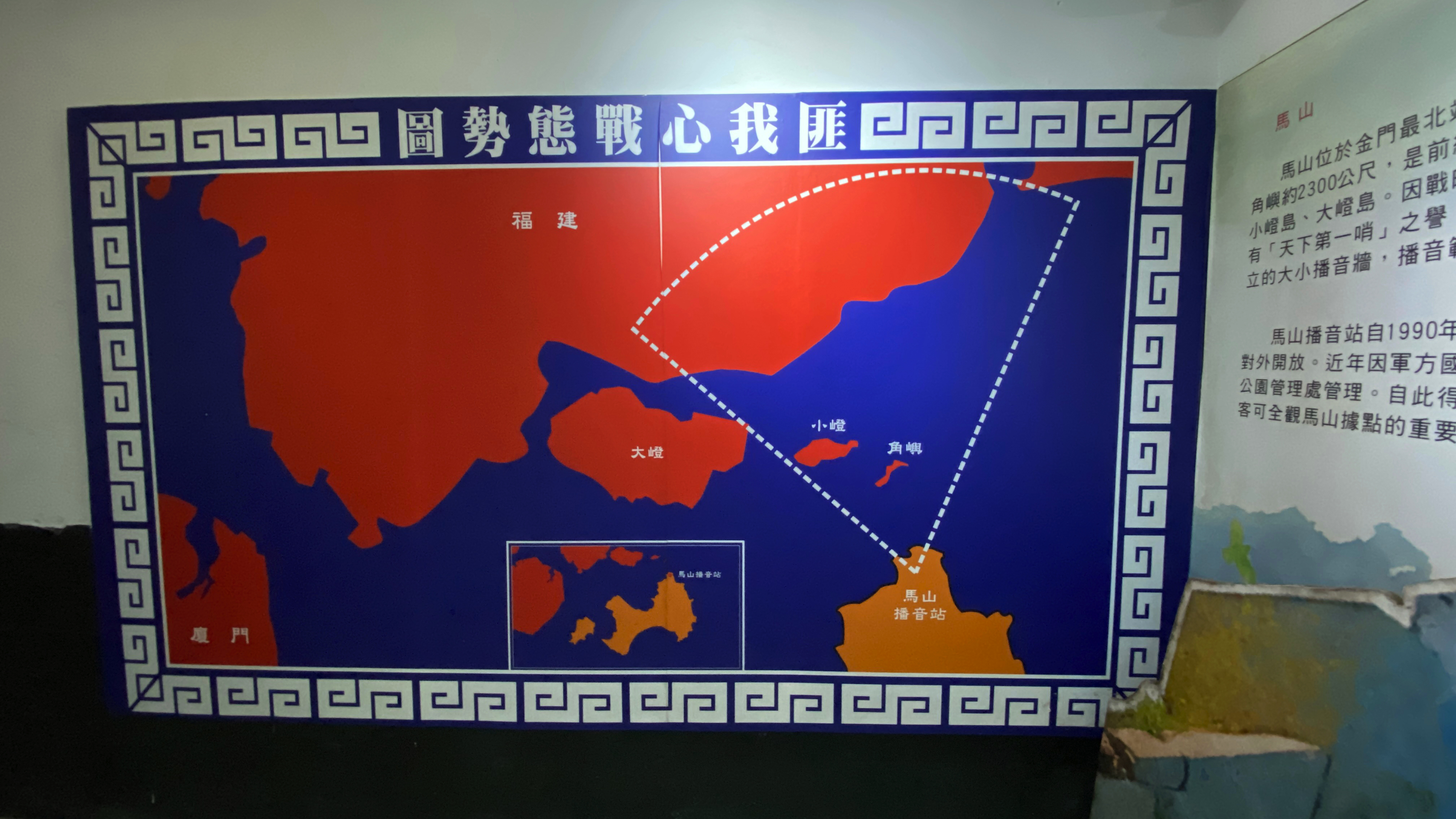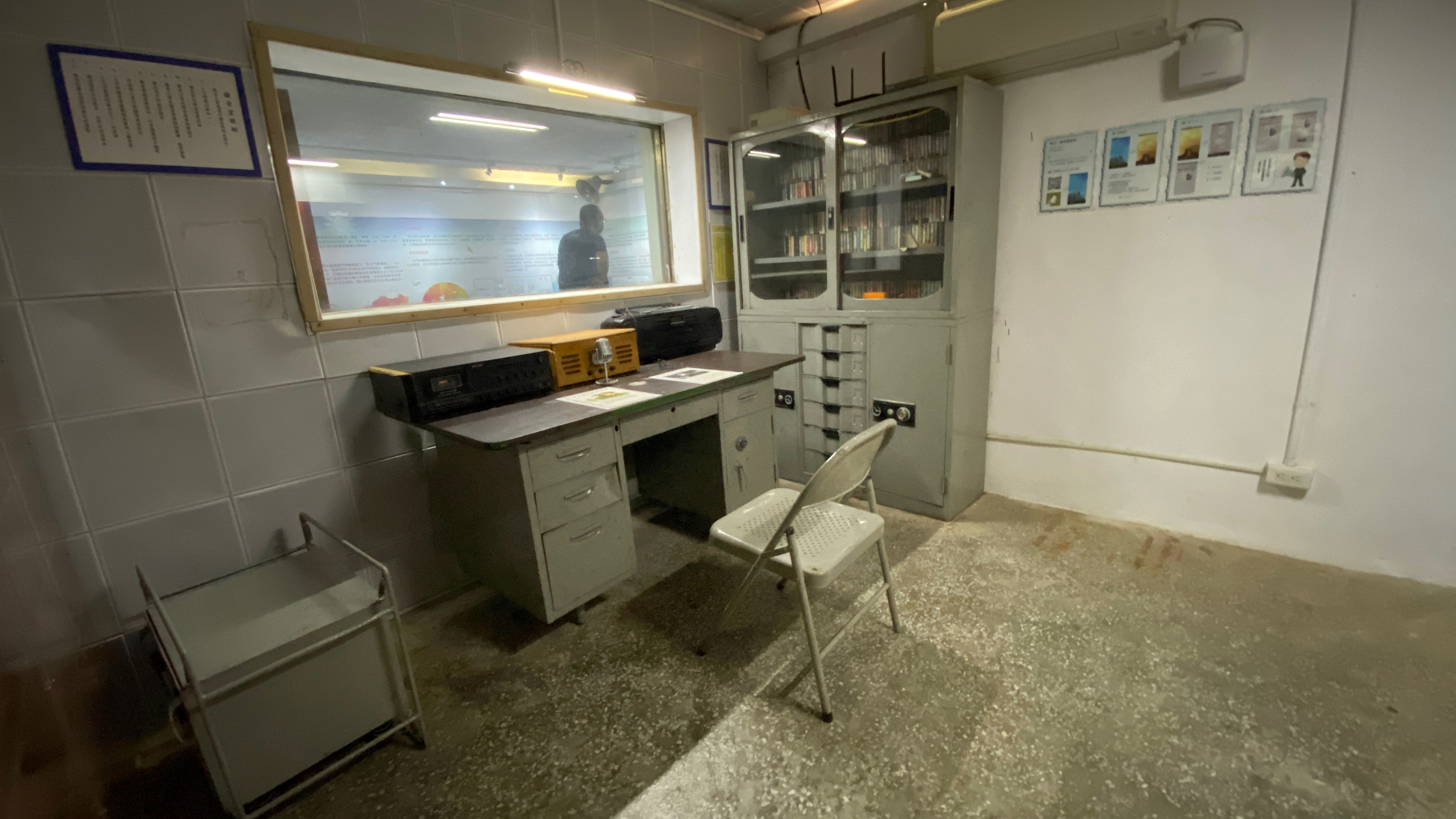 ↑ 馬山播音站,在當年心理戰中扮演著重要的角色,現場展示著當年的播音間、播放流行音樂的卡帶與宣傳放送的範圍,而當年的播音員大多是女軍官擔任。